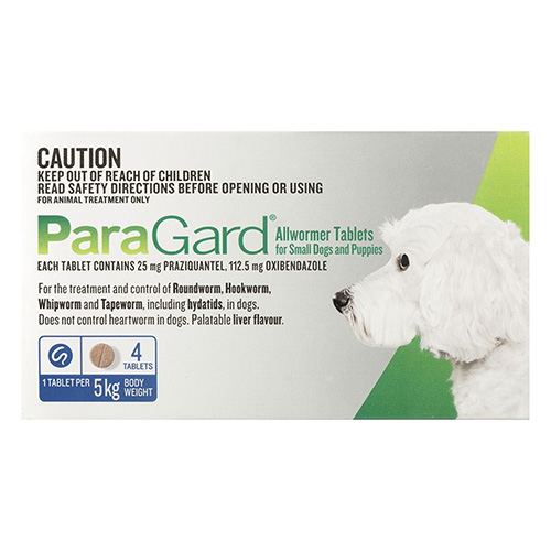Paragard is a highly palatable, easy-to-administer liver-flavoured, broad-spectrum dewormer for puppies and dogs.  It is effective in eliminating roundworms, tapeworms, whipworms and hookworms. In addition to this, it protects against hydatid tapeworms. The dewormer is suitable for puppies from 2 weeks of age. Paragard Allwomer is an ideal choice for the elimination of multiple worms with a single dose.